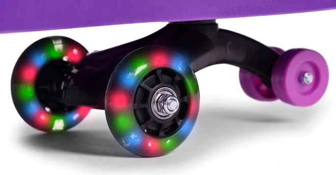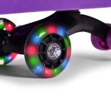 Les roues en gomme garantissent une conduite fluide et silencieuse tout en protégeant le sol des rayures, ce qui le rend adapté à l’intérieur comme à l’extérieur. Les LEDs dans les roues s’allument en roulant et améliorent la visibilité au crépuscule, ajoutant une dimension sûre et spectaculaire au jeu.