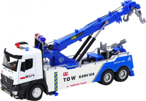 La cabine de la grue est fabriquée en métal, ce qui augmente sa durabilité et son aspect authentique. La robustesse et le sens du détail se retrouvent également dans les roues en caoutchouc, qui assurent une excellente adhérence aux surfaces. Grâce au mécanisme d’entraînement, la grue avance avec une légère poussée, ajoutant du dynamisme au jeu.