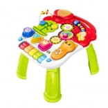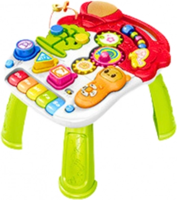- Panneau musical: Les pianos situés sur le dessous de la table enseignent les bases de la musique, tandis qu'une mélodie joyeuse maintient l'enfant motivé lors de l'apprentissage de la marche.