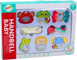 L'emballage coloré avec l'inscription 'Handbell Baby' assure que l'ensemble de hochets attire l'attention et constitue un excellent cadeau pour les plus jeunes.