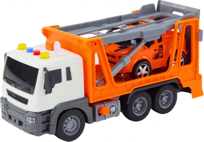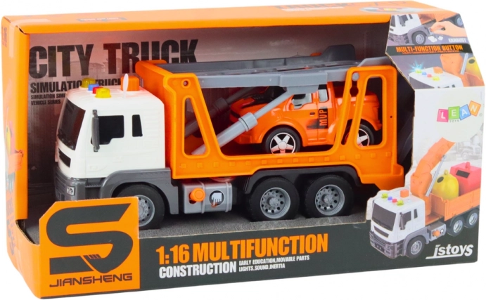 Camion porte-voitures multifonction avec lumières et sons 1:16 Voiture orange