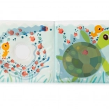 Le livre est souple, étanche et sûr même pour les tout-petits. Grâce au trou central, il se tient facilement dans les petites mains mouillées, flotte à la surface et convient parfaitement au bain quotidien. Après le jeu, il suffit de le rincer à l’eau claire ; pour un entretien plus poussé, privilégiez le lavage à la main.