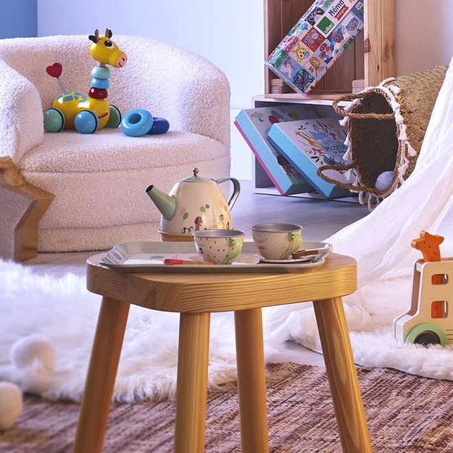 Le service à thé de la marque Vilac est l’outil parfait pour développer le sens social et l’imagination des enfants. La théière est équipée d’une boîte à musique qui, lorsqu’on l’incline, joue la mélodie « Beaucoup de bonheur et de santé ». Ce jouet ne nécessite pas de piles, ce qui est écologique et pratique.