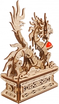 Le modèle est entièrement articulé et le dragon peut être facilement retiré du socle. Sa base dissimule une cachette secrète – en appuyant sur un bouton discret intégré au motif floral, vous révélez un espace pour un message personnel, une amulette ou l’enveloppe rouge du Nouvel An « hóngbāo ». Les pièces sont prédécoupées et s’ajustent parfaitement, vous n’avez pas besoin de colle et l’assemblage est un plaisir.