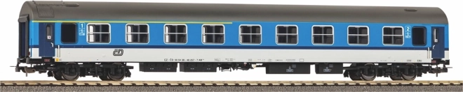 Voiture voyageurs de train rapide 1re/2e classe dans le schéma iconique NAJBRT de l’exploitant ČD, réalisée selon le type Y et correspondant à l’époque V. Des gravures nettes, des bogies travaillés et des équipements visibles à l’intérieur lui confèrent un réalisme maximal. Les attelages courts avec cinématique précise et l’élément d’attelage rapproché PIKO assurent un fonctionnement fiable en rame.