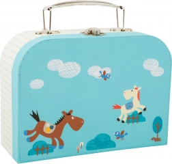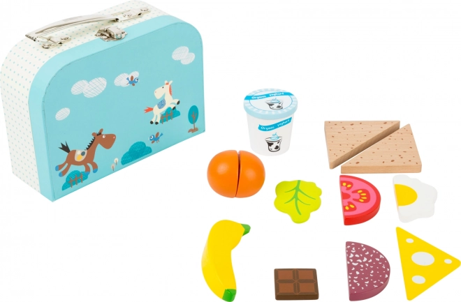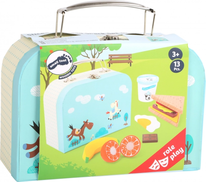 Une valise à goûter bleue élégante et robuste de la marque Small Foot, idéale pour les cuisines pour enfants et les jeux de marchande. Elle est fabriquée en bois de qualité, conforme à la norme stricte EN 71, et utilise des peintures sûres et résistantes à la salive. Elle favorise la motricité fine, la perception sensorielle et amuse durablement les enfants à partir de 3 ans.