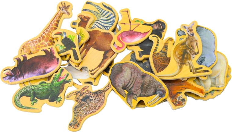 Ce set de 20 magnets en bois apporte aux enfants le monde coloré de la faune directement à la maison. Chaque pièce possède une impression réaliste qui reflète fidèlement les caractéristiques de chaque espèce, favorisant ainsi un apprentissage naturel par le jeu. Les magnets adhèrent facilement au réfrigérateur, au tableau magnétique ou à toute autre surface métallique.