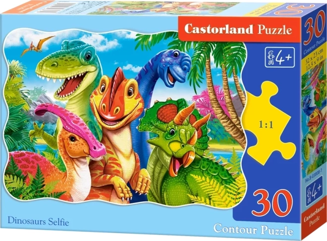 Puzzle de la collection Castorland avec un motif de selfie de dinosaure qui apporte du plaisir aux enfants dès 4 ans. Les pièces de 5 cm et le bord façonné offrent une expérience inoubliable de montage.