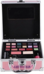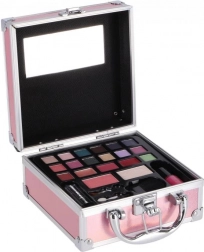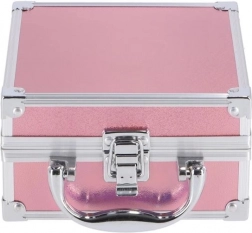 Cette élégante mallette cosmétique rose au format compact offre une organisation claire et un équipement complet pour maquiller yeux, teint et lèvres. La conception en aluminium avec fermeture métallique est à la fois durable et légère, idéale pour le sac à main ou les voyages.