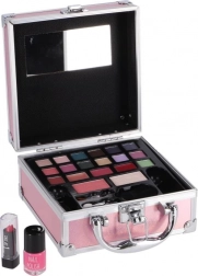 Mini mallette de maquillage rose élégante pour un usage quotidien et en voyage. Elle contient tout le nécessaire pour un maquillage rapide : 14 fards à paupières, couleurs scintillantes pour les lèvres, blush et poudre, rouge à lèvres et vernis à ongles. Un miroir pratique, un pinceau à blush, un applicateur mousse et un pinceau à lèvres garantissent une application confortable à la maison comme en déplacement.