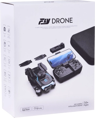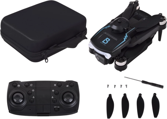 Les fonctions du drone incluent un mode trois vitesses, une rotation à 360°, l'évitement d'obstacles et une fonction de retour au point de départ. L'emballage comprend également une télécommande, des hélices de rechange et d'autres accessoires pour une utilisation sans soucis.
