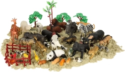 Contenu de l’emballage : 51× animal, 3× arbre, 1× palmier, 4× clôture – au total 59 pièces.