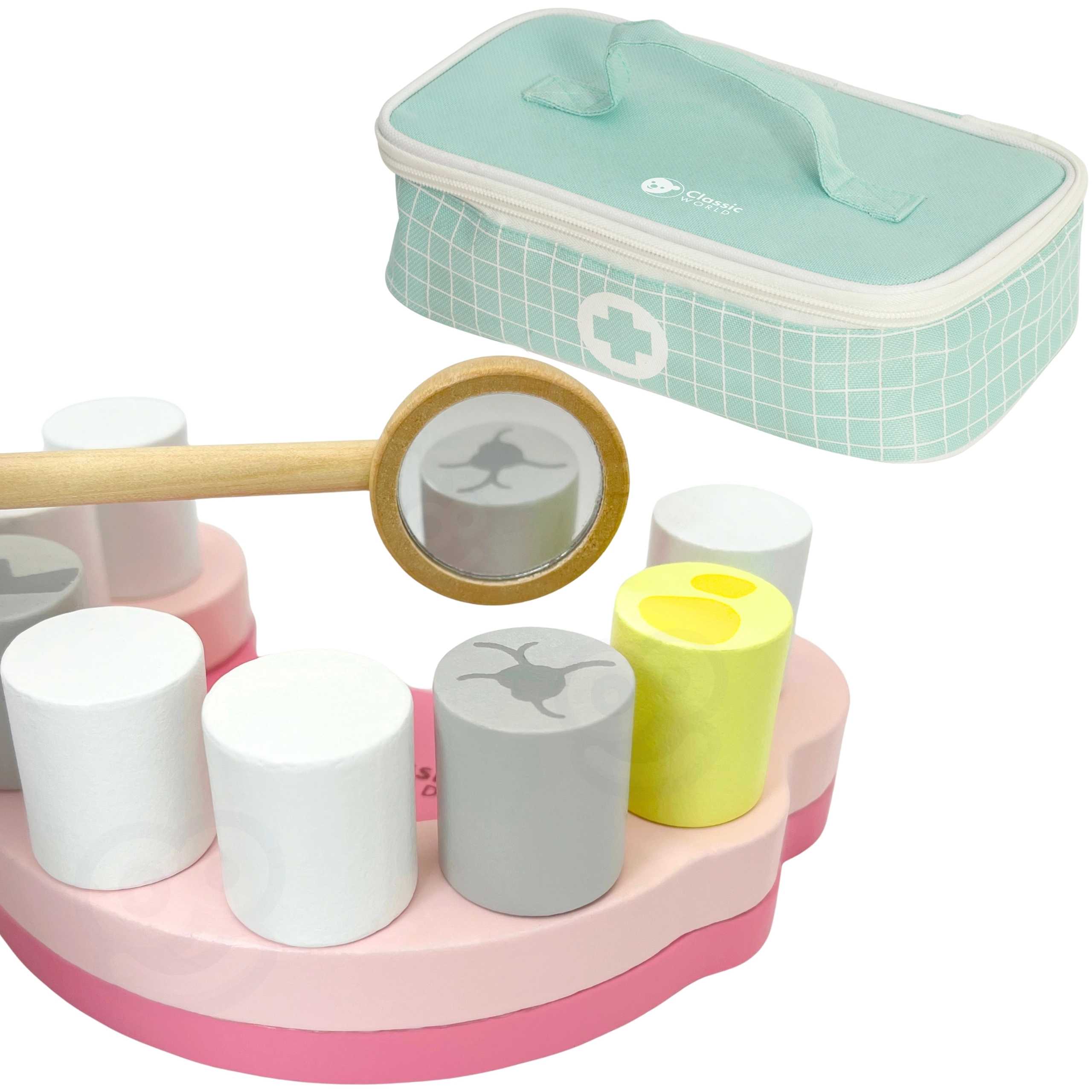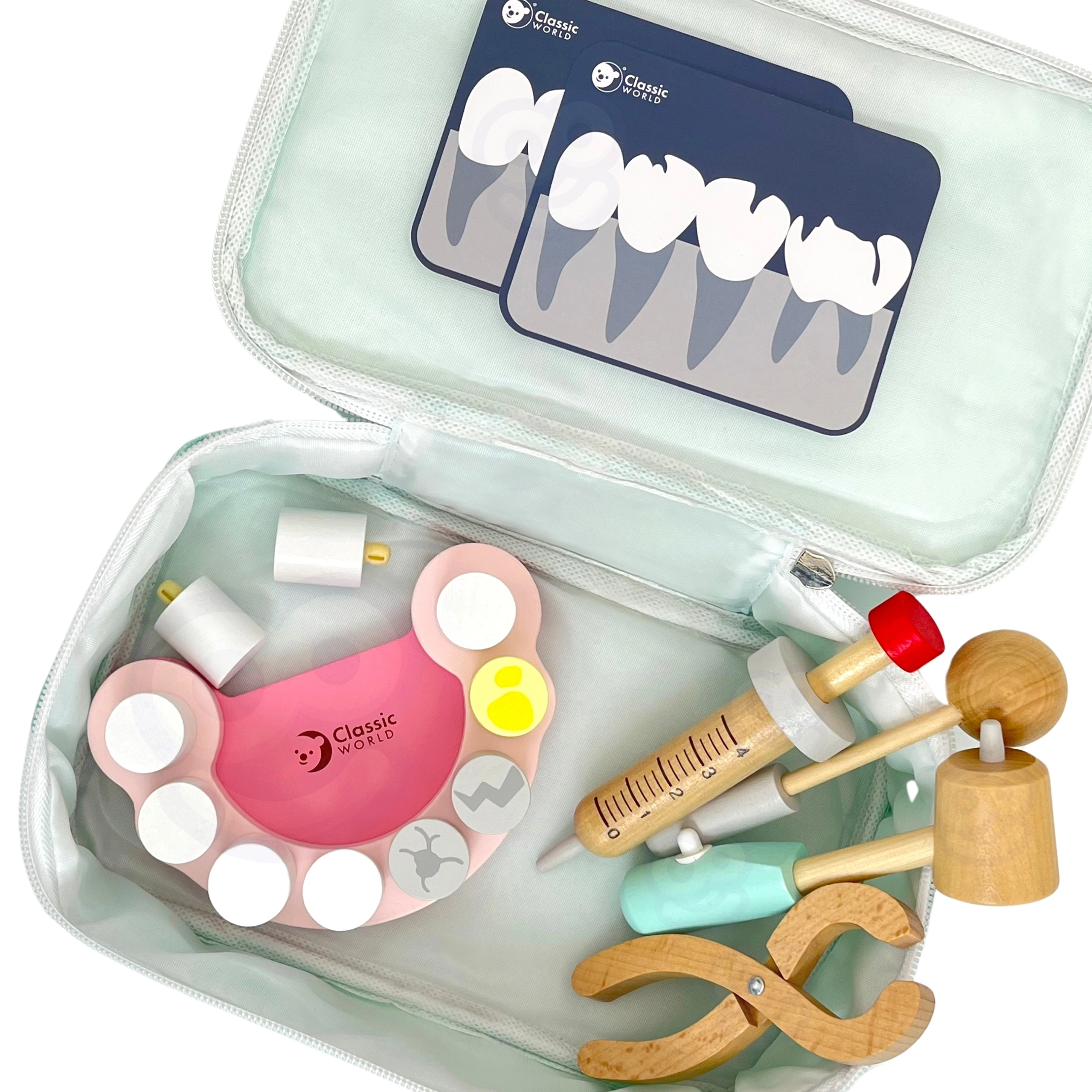 Classic World petit dentiste – ensemble en bois dans une valisette, 18 pièces