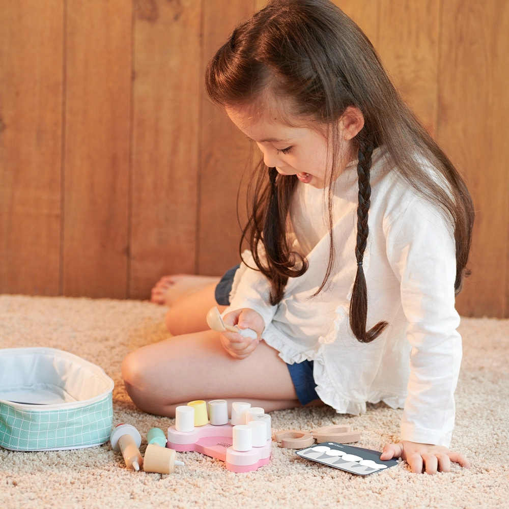 La fabrication premium en bois naturel garantit résistance et longévité. La valisette pratique maintient toutes les pièces ensemble, ce qui rend l’ensemble idéal pour les déplacements. Avec son design attrayant aux teintes douces, c’est un excellent cadeau pour les enfants dès 3 ans.