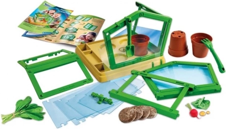 Ce kit éducatif présente aux enfants les bases de la botanique de façon simple et amusante. La serre transparente avec toit réglable aide à réguler l’humidité et la température, ce qui en fait un excellent choix pour les premières expériences de culture à la maison.