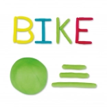 L'image montre les lettres colorées « BIKE » créées en pâte à modeler ou en pâte à jouer, favorisant un apprentissage créatif et interactif.