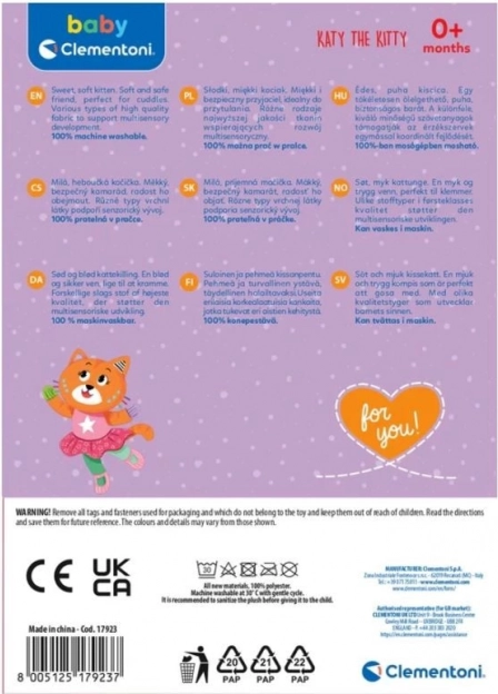 Le chat en peluche Katka est conçu pour accompagner les parents dans la stimulation sensorielle de leur enfant. Ce jouet est :