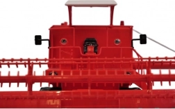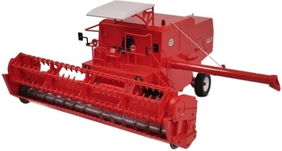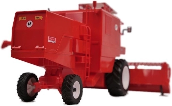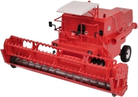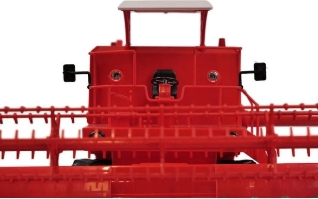 Cabine, barre de coupe et pièces mobiles finement réalisées. Les éléments rotatifs du mécanisme de coupe reproduisent fidèlement le travail d’une vraie moissonneuse-batteuse.