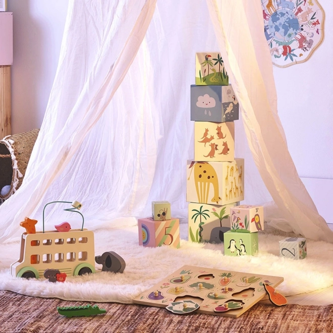 Le bus en bois pour animaux par Sarah Betz est le meilleur compagnon de votre enfant dans sa quête de découverte. Ce formidable ensemble de jeu favorise la motricité fine et offre d'innombrables possibilités de jeu imaginatif.
