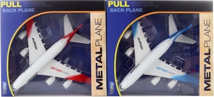 Avion en métal à piles avec fonction de marche arrière. En appuyant sur les roues, il émet des sons de vol authentiques et clignote, idéal pour les petits pilotes à partir de 3 ans.