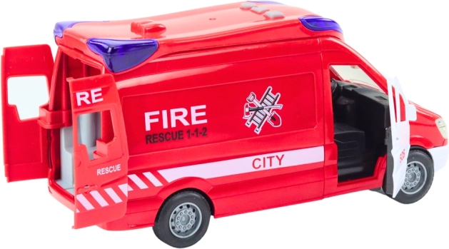 Les portes avant et l’arrière s’ouvrent pour permettre d’insérer des figurines de pompiers et des accessoires, stimulant ainsi un jeu encore plus créatif.