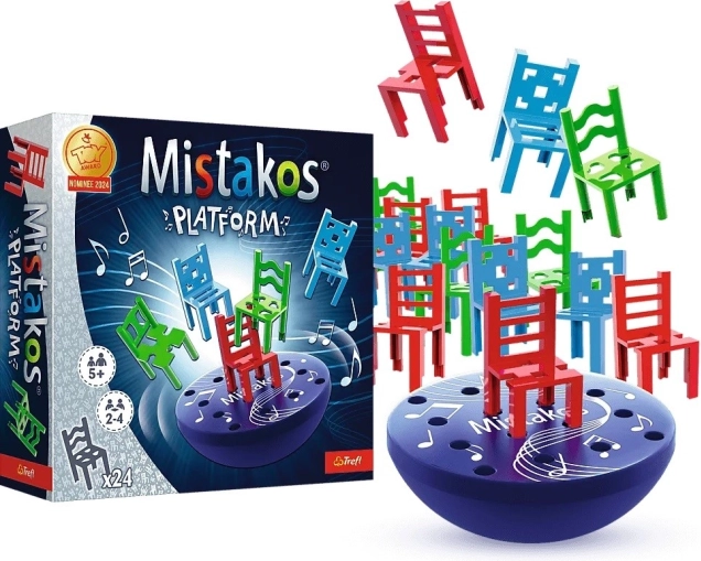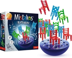Le jeu Mistakos met magistralement vos réflexes à l’épreuve, pour les enfants comme pour les adultes. La plateforme électronique vous plonge dans l’action avec musique d’accompagnement et rotation, tandis que vous essayez d’ajouter vos chaises sans faire tomber les autres. L’objectif est de vous débarrasser rapidement de toutes vos chaises et de devenir le vainqueur !
