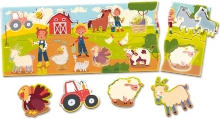 Puzzle pour les tout-petits, conçu pour développer les compétences de base des enfants de 1 à 4 ans. L’image complexe de la ferme apporte joie et divertissement.