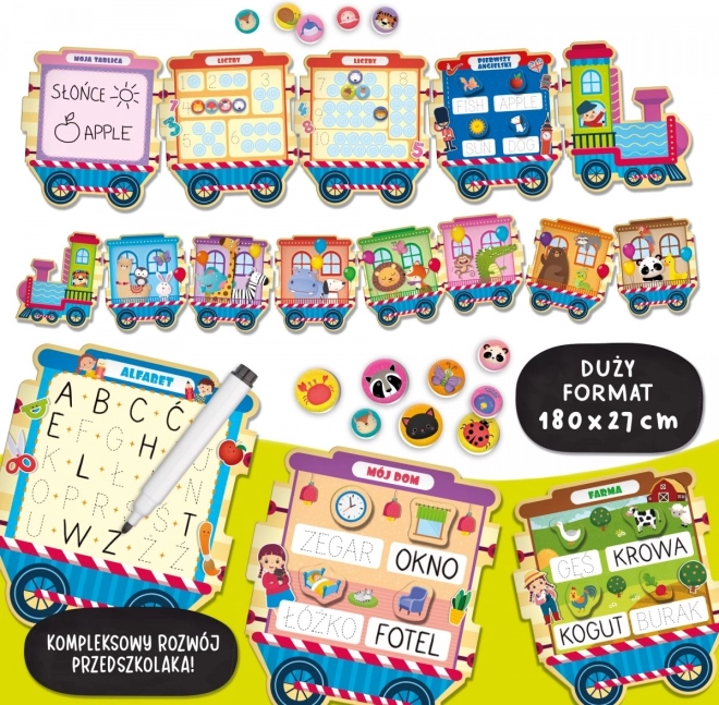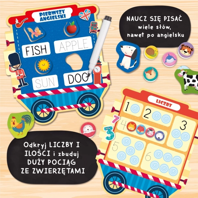 Un petit train amusant avec de nombreuses activités éducatives ! Chaque wagon propose un jeu différent. Les enfants peuvent découvrir l’alphabet, les chiffres, leurs premiers mots en anglais et bien plus encore !