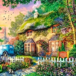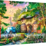 Le puzzle offre une superbe scène d'un chalet de campagne, entouré de verdure et de fleurs. Cette image vous immergera dans l'ambiance paisible de la campagne.