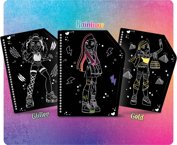 Entrez dans le monde enchanteur de Monster High et créez avec le carnet à gratter, où, en grattant la couche noire, vous révélez des effets dorés, pailletés et irisés. Le carnet offre 44 pages pleines de créativité.