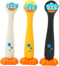 Set ludique de trois canards plongeurs pour l’eau, pour enfants dès 6 ans, en blanc, noir et jaune. Équipés de lest pour une immersion facile, ils favorisent l’adresse, la coordination et la confiance dans l’eau. Idéals pour la baignoire et la piscine, avec certification CE et conformité à la norme EN71.