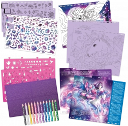 Le set est conçu pour encourager la créativité, la patience et la motricité fine. Avec de nombreux autocollants, pochoirs et moules en plastique, chaque page est un nouveau défi et une aventure. Grâce aux conseils clairs et à 12 techniques de dessin avec guide, les enfants acquièrent de nouvelles méthodes et effets.