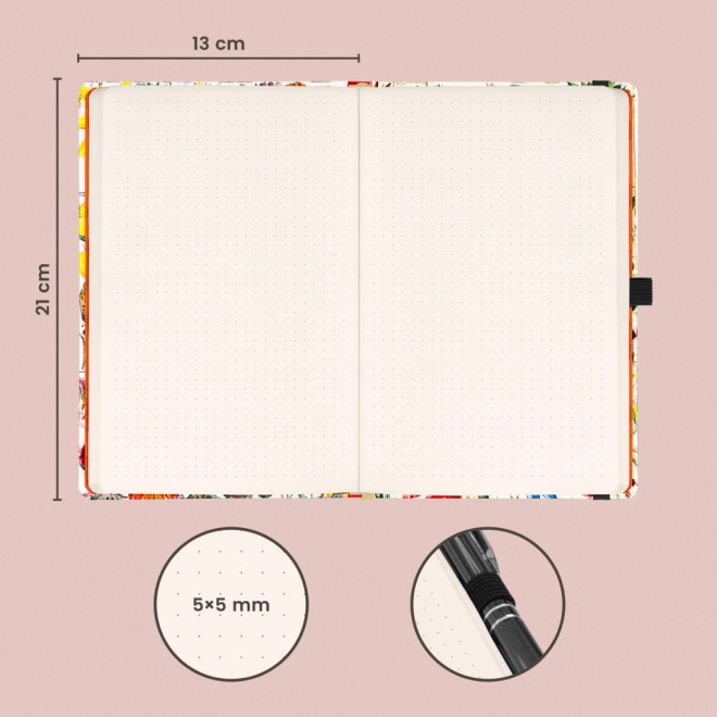 Ce carnet stylé de la collection de Kateřina Winterová se distingue par sa couverture rigide ornée d’illustrations florales et par des détails bien pensés pour un usage quotidien confortable. Grâce au quadrillage dot, il est parfait pour le bullet journal, les dessins, les croquis et l’organisation des tâches.