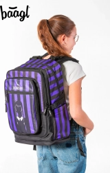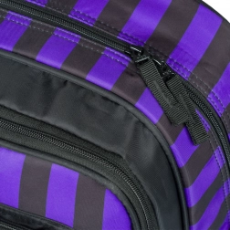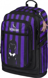 Le sac à dos scolaire CUBIC WEDNESDAY combine un design affirmé à rayures noir‑violet avec une ergonomie étudiée pour un confort quotidien. Grâce aux bretelles d’épaule, à la sangle de poitrine et aux sangles de compression latérales entièrement réglables, le sac s’adapte facilement à la silhouette, tandis que le dos respirant facilite le port même à pleine charge.