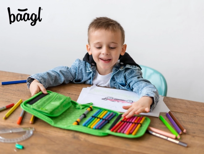 • Trousse scolaire classique à un seul compartiment avec deux rabats.