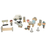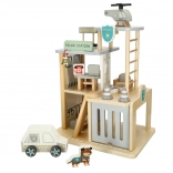 Ce set en bois bien pensé plonge les enfants dans l’univers des interventions de secours. Au rez-de-chaussée se trouvent le garage pour la voiture de police et la cellule pour le voleur, au milieu le bureau du chef et sur le toit l’héliport pour des départs rapides. Le bois soigneusement poncé garantit une manipulation sûre et une longue durée de vie du jouet.