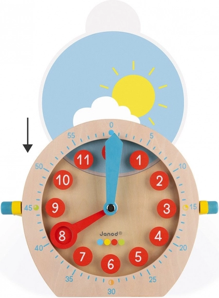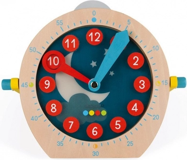 L’horloge pédagogique en bois JANOD aide les enfants à comprendre rapidement et avec plaisir l’heure qu’il est. Son grand cadran aux chiffres facilement lisibles et ses aiguilles colorées guident pas à pas les enfants vers la compréhension du temps, qu’ils s’exercent aux heures pleines, aux demi-heures ou aux minutes.