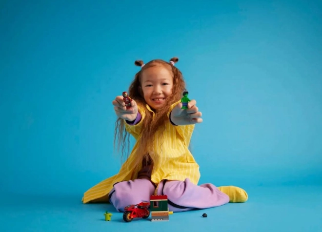 - Accessoires d’action : moto rouge, petite construction avec fonction d’effondrement et éléments thématiques