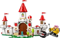 LEGO Super Mario Roy et la bataille au château de Peach propose un décor emblématique de l’univers vidéoludique. Ce modèle impressionnant du château de la princesse Peach comprend un château ouvrant, riche en possibilités de jeu. Il est doté de murs faciles à reconstruire qui s’effondrent sous la pression, d’une tour, d’une catapulte, d’un trône pivotant et d’une fontaine dans le jardin. Le set inclut trois figurines LEGO : Roy (une première dans LEGO Super Mario), Chain Chomp et Toad.
