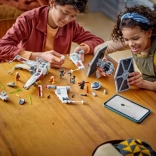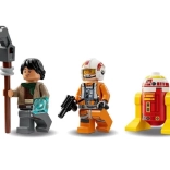 La boîte contient quatre minifigurines détaillées (pilote de l’Alliance rebelle, pilote TIE, Yesi Scala, Sig Greebling) ainsi que le droïde L3-G0, que vous pouvez placer derrière le cockpit du X-wing. Grâce aux cabines ouvrantes, aux lance-projectiles à ressort et au train d’atterrissage pliable, le jeu est fluide, palpitant et incroyablement modulable.
