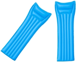 Ce matelas de plage est idéal pour se prélasser au bord de la piscine ou sur un lac. Grâce à l’oreiller intégré, il offre un agréable soutien de la tête, tandis que le matériau PVC robuste assure une longue durée de vie et une bonne stabilité sur l’eau. Sa forme classique et sa couleur bleue universelle complètent parfaitement tout équipement estival.