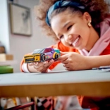 L’intérieur de la voiture est richement équipé : vous y trouverez une cage de sécurité, un tableau de bord, un levier de vitesses et un extincteur. Une minifigurine de pilote NASCAR avec casque est incluse, que l’on peut installer derrière le volant pour des courses palpitantes.