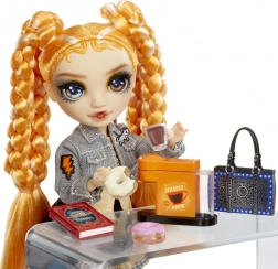 La poupée RAINBOW HIGH Sparkle & Shine Clementine propose un look orange audacieux, une petite veste en denim, une jupe à motif carreaux et des chaussures à plateforme marquées RAINBOW. Inclus : un support, un peigne et des accessoires sur le thème du café qui enrichissent les possibilités de jeu et d’histoires.