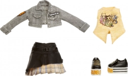 Sa chevelure orange éclatante en tresses, sa veste en denim à écussons et ses chaussures à plateforme avec l’inscription RAINBOW font de Clementine la star de toute collection.