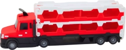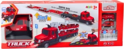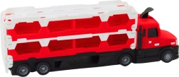 Découvrez le plaisir 2-en-1 – un grand transporteur automobile rouge qui, une fois déployé, se transforme en piste de course de 211 cm. Inclus : effets lumineux et sonores, 2 petites voitures de pompiers 1:64 et 7 panneaux de signalisation pour des jeux créatifs et l’apprentissage des règles de circulation.