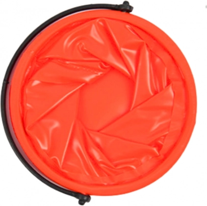 Le seau pliant orange peut être facilement plié en forme plate, ce qui facilite son stockage et son transport.