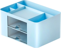 L'organiseur bleu offre 5 compartiments et 2 tiroirs pour divers besoins d'organisation.