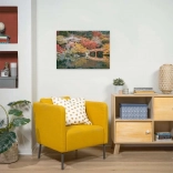Une palette automnale de tons rouges et orangés, avec un pont traditionnel et un temple, crée un motif agréable à assembler et propice à la relaxation.