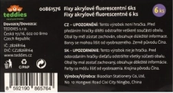 Set de marqueurs acryliques aux couleurs fluorescentes intenses pour une utilisation créative universelle. Convient pour papier, bois, pierres, verre, plastique et céramique. L’emballage contient 6 teintes vives offrant une excellente couverture et un séchage rapide. Idéal pour décorer, étiqueter et créer sans bavures. Secouez avant utilisation. Ce n’est pas un jouet.