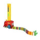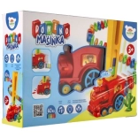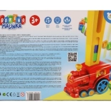 En roulant, le train dépose lui-même les blocs colorés en une longue rangée. Les enfants apprécient une préparation fluide et rapide pour de grandes cascades de dominos.